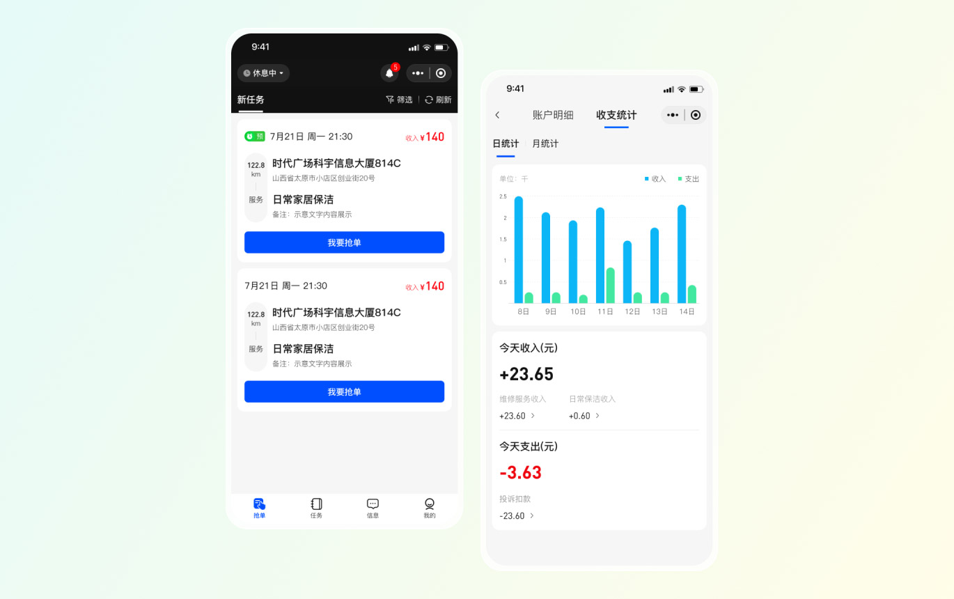 为服务人员提供智能接单、行程规划、服务记录和收入管理功能,提高工作效率。